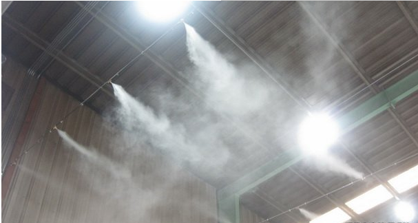 4.噴霧降溫:噴霧降溫的原理也是和水簾一樣的,都是通過(guò)水蒸發(fā)吸熱達(dá)到降溫的,不同的,噴霧降溫是直接在廠房?jī)?nèi)安裝管線噴嘴,通過(guò)主機(jī)加壓把水運(yùn)輸?shù)礁髦Ч苈?,再通過(guò)0.1毫米孔徑的高壓霧化噴嘴噴出成霧,霧蒸發(fā)降溫。噴霧降溫優(yōu)點(diǎn):前期成本低,后期成本也很低(一般1000平米的廠房1.5KW的主機(jī)就可以了),降溫幅度大。缺點(diǎn)就是需要通風(fēng)條件好的廠房,密封廠房不適用。